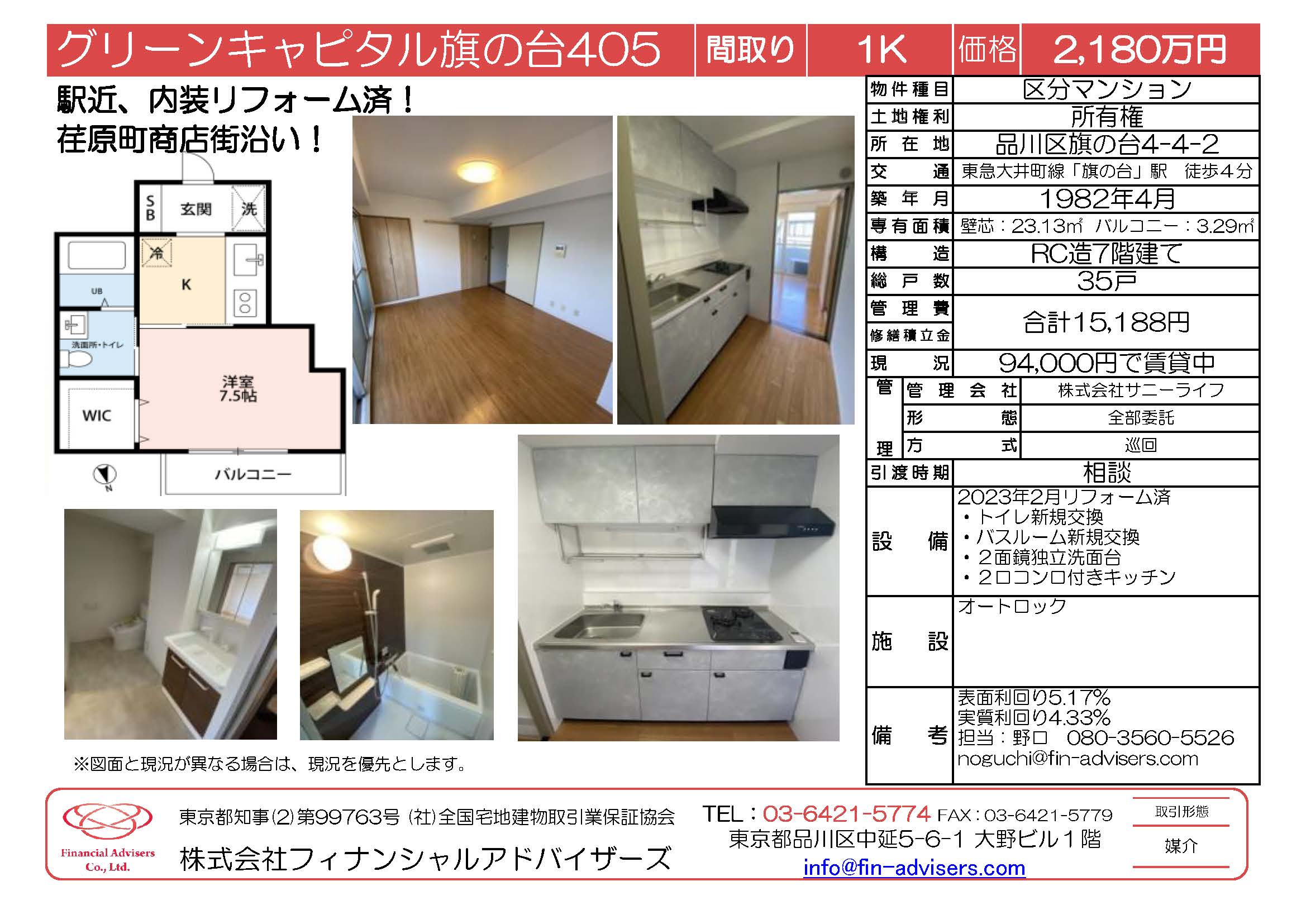 物件名 グリーンキャピタル旗の台(ぐりーんきゃぴたるはたのだい)