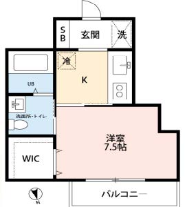 専有面積 23.13㎡(壁心)/バルコニー3.29㎡